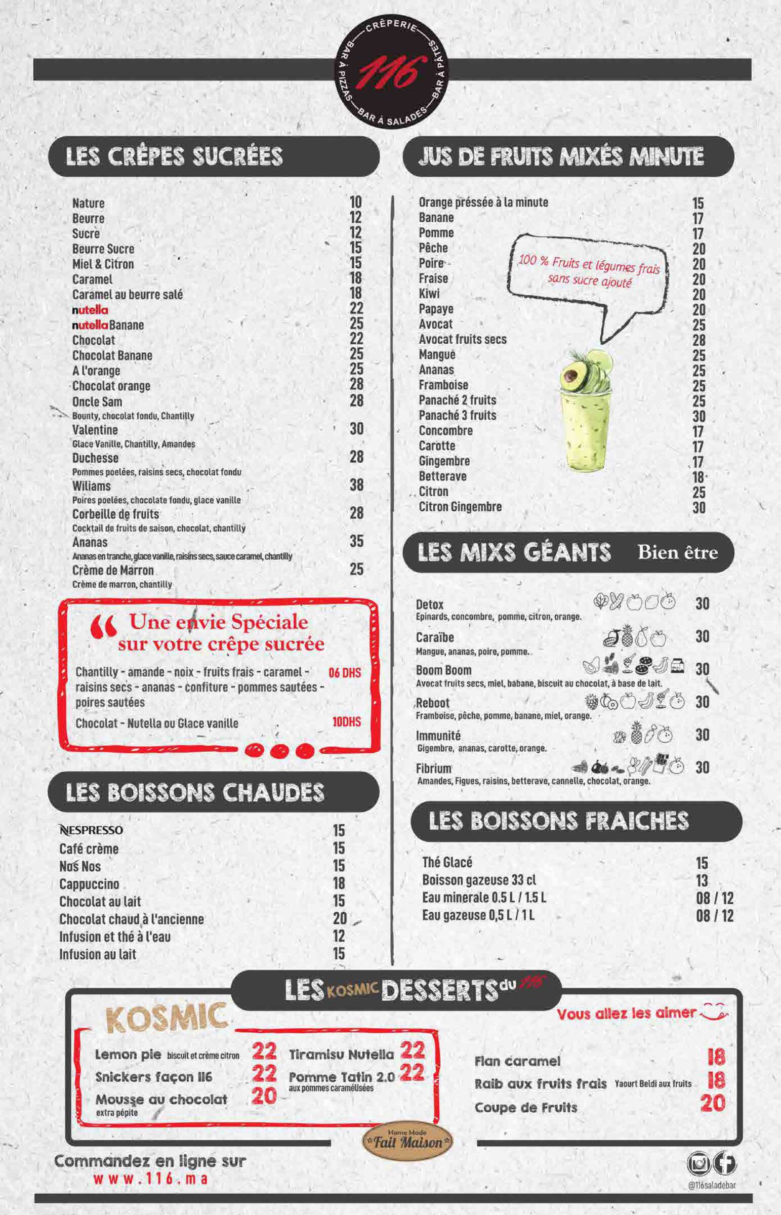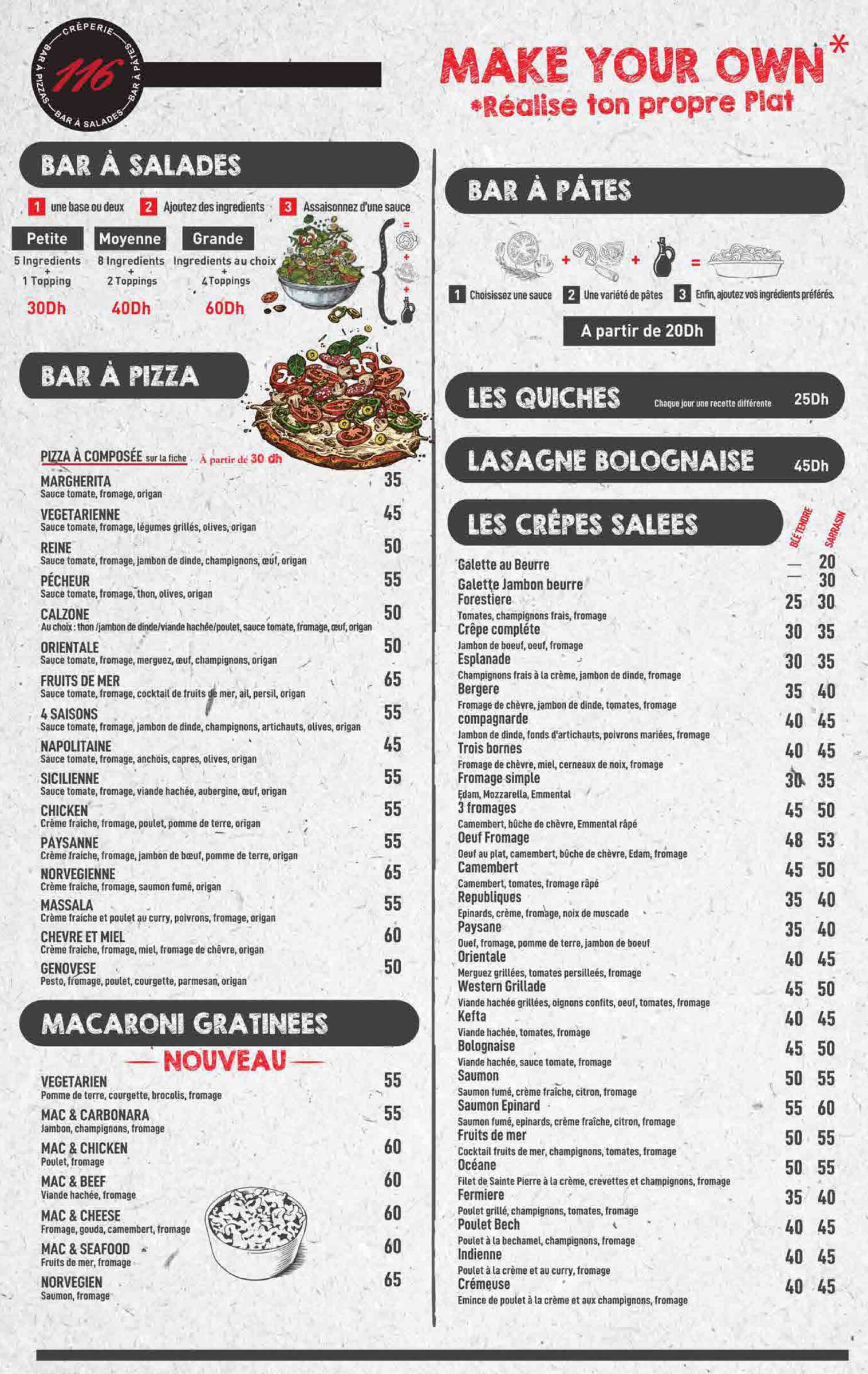 Pâtes, Salades, Crêpes, Pizza feu de bois