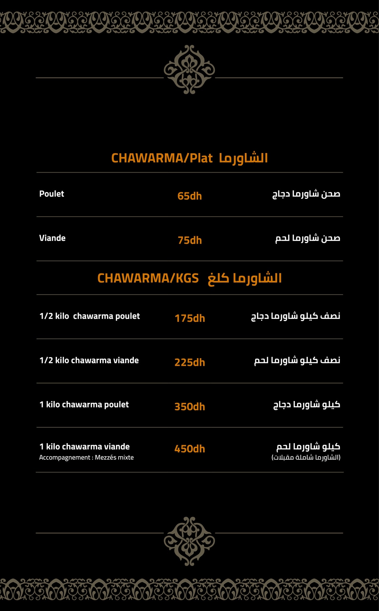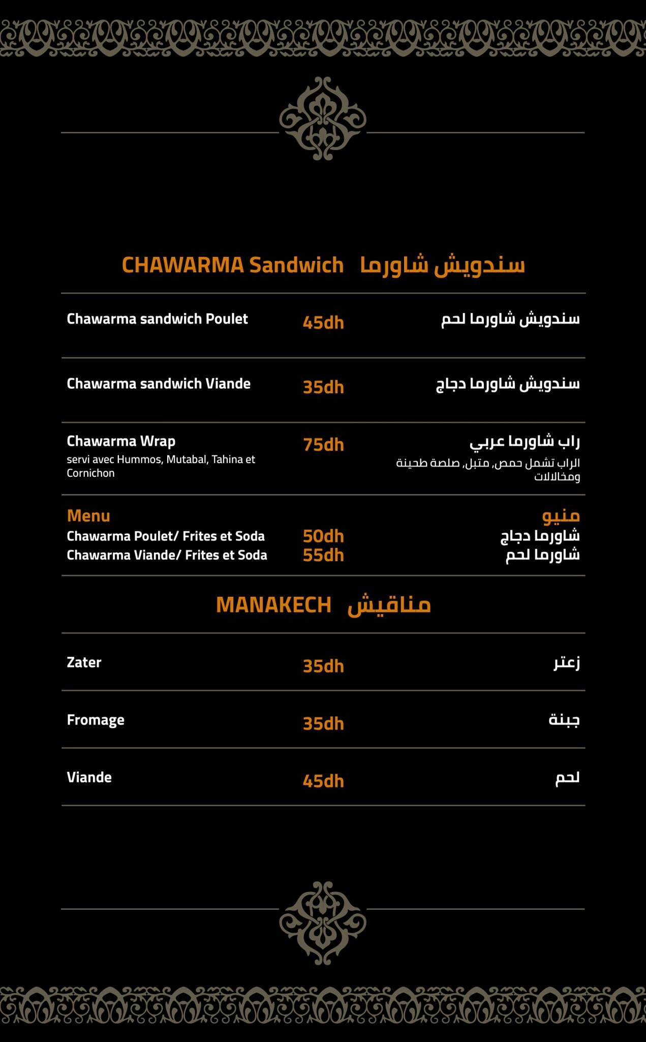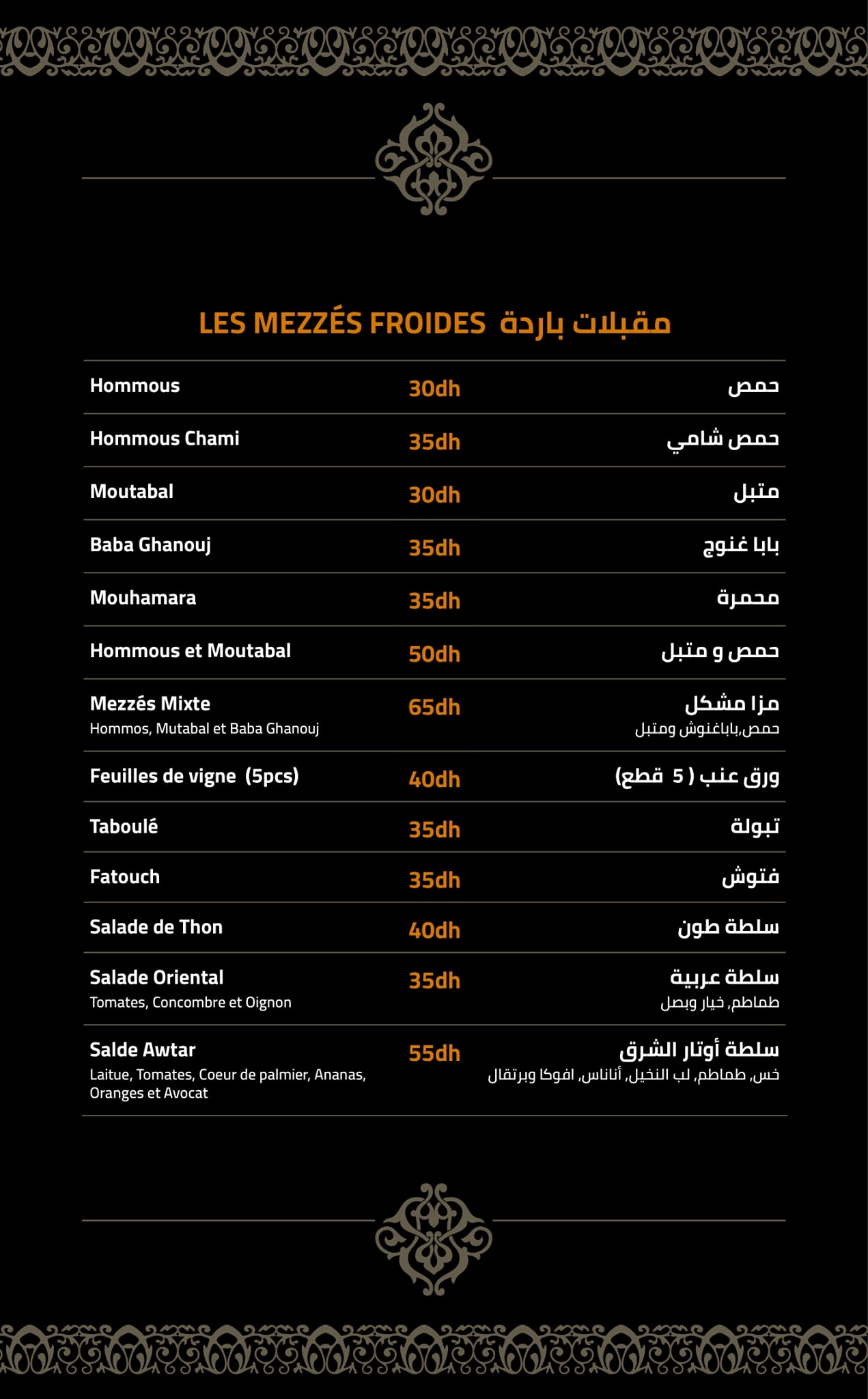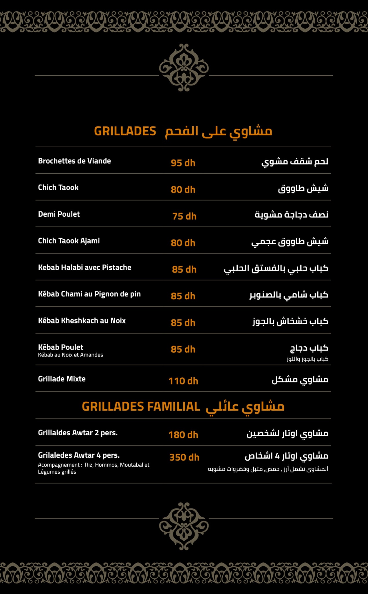 Menu Awtar Restaurant Oriental