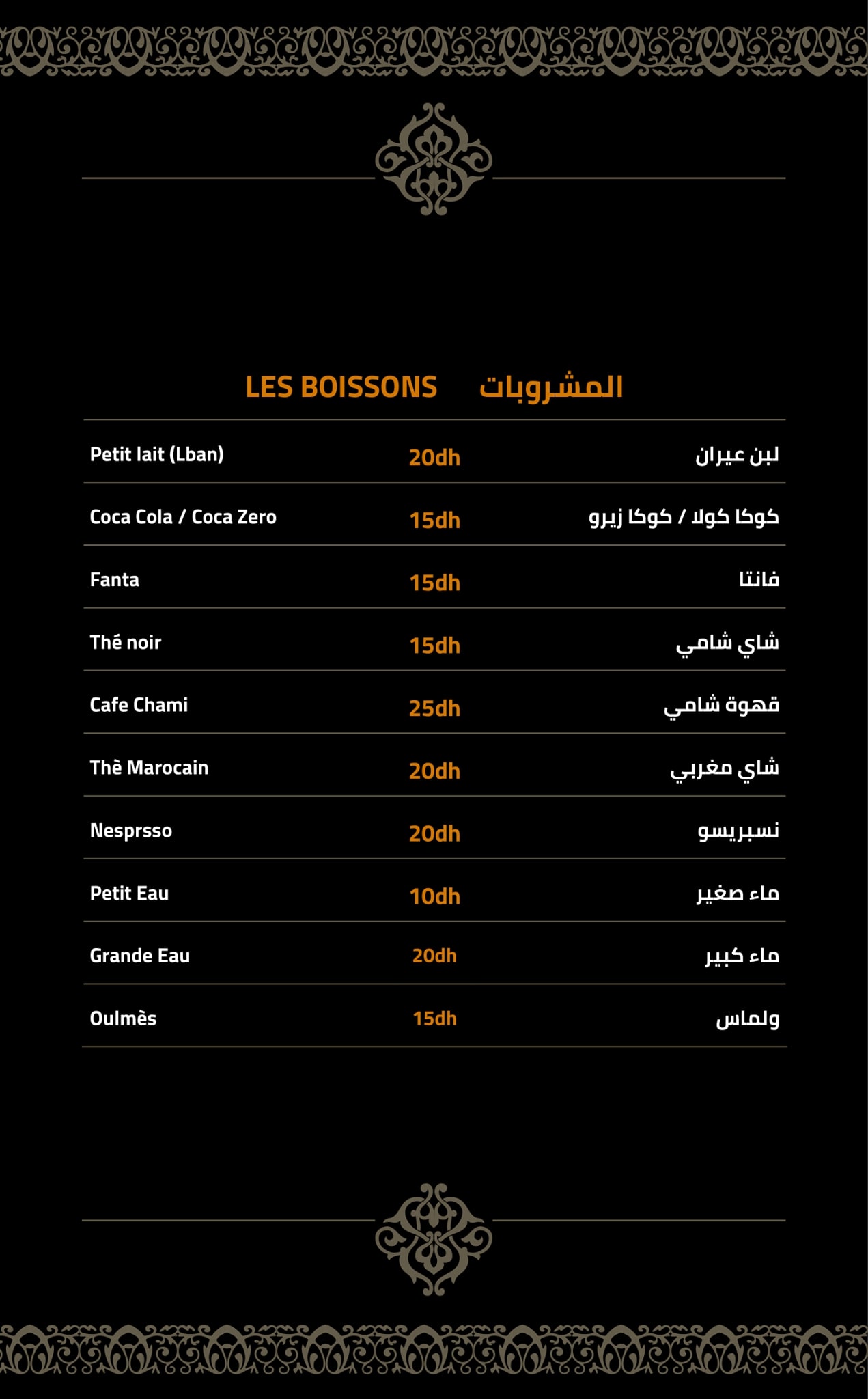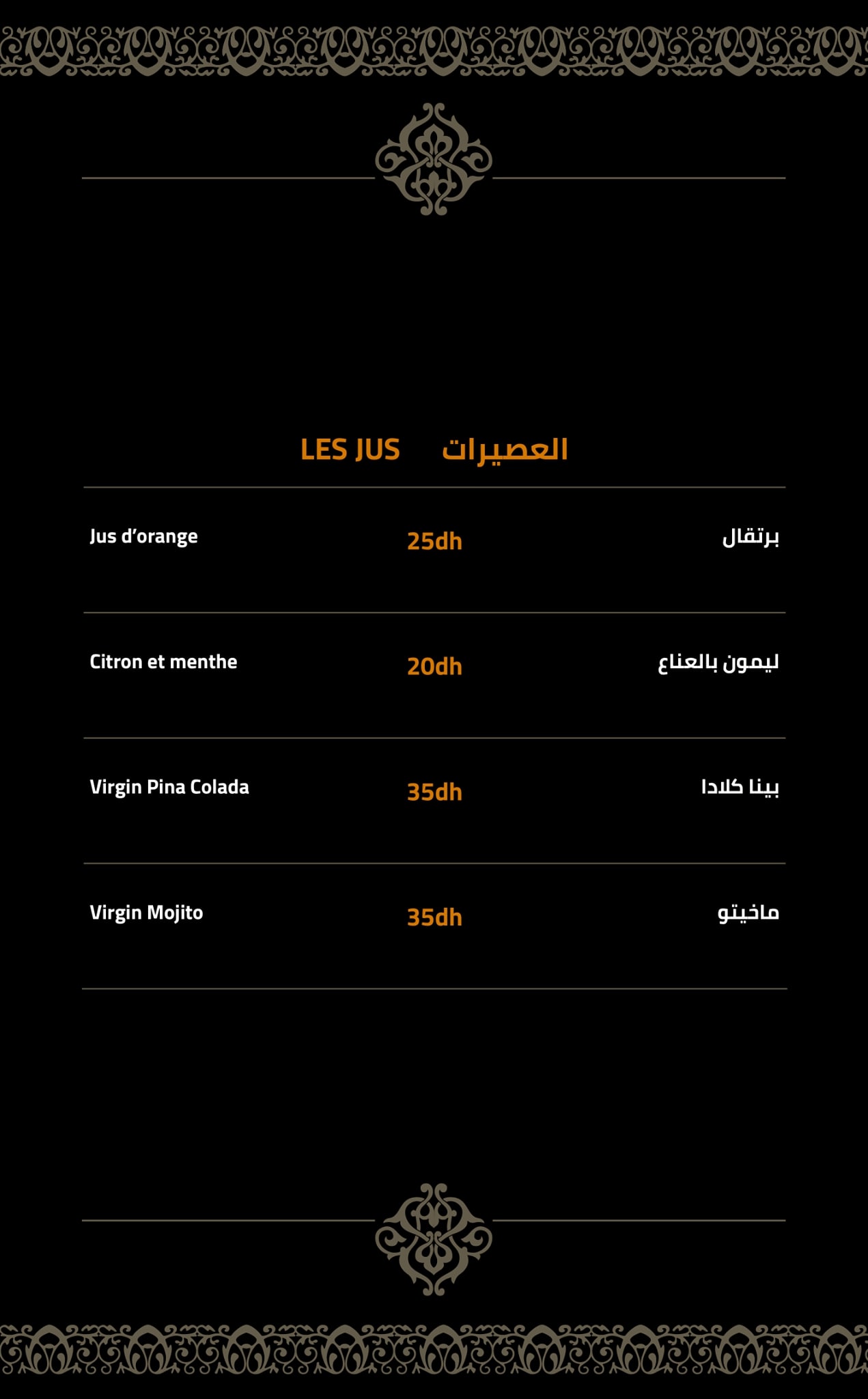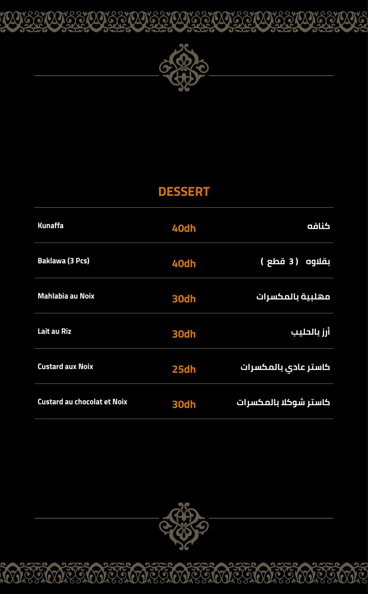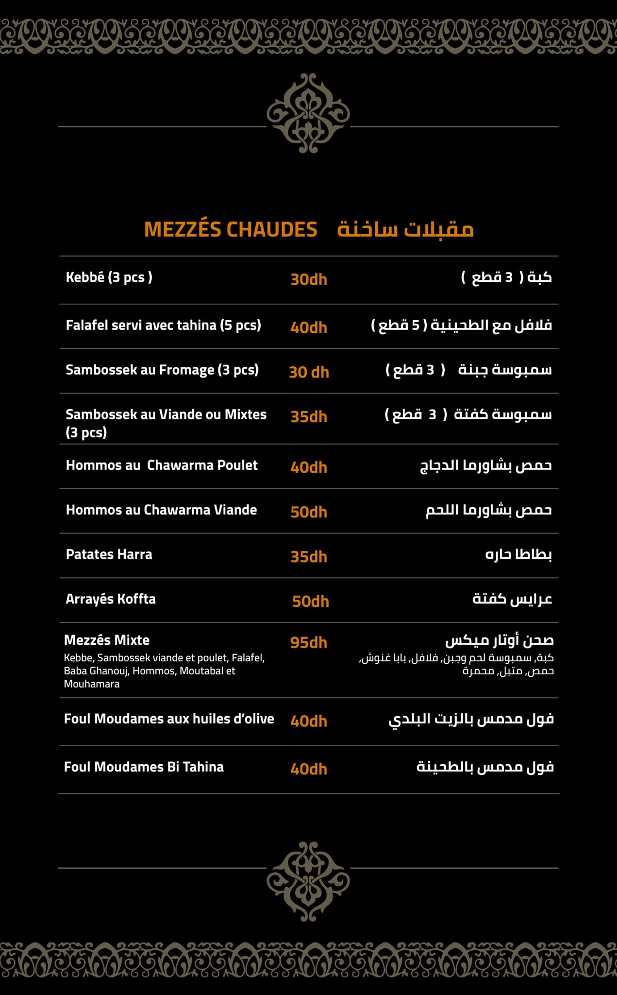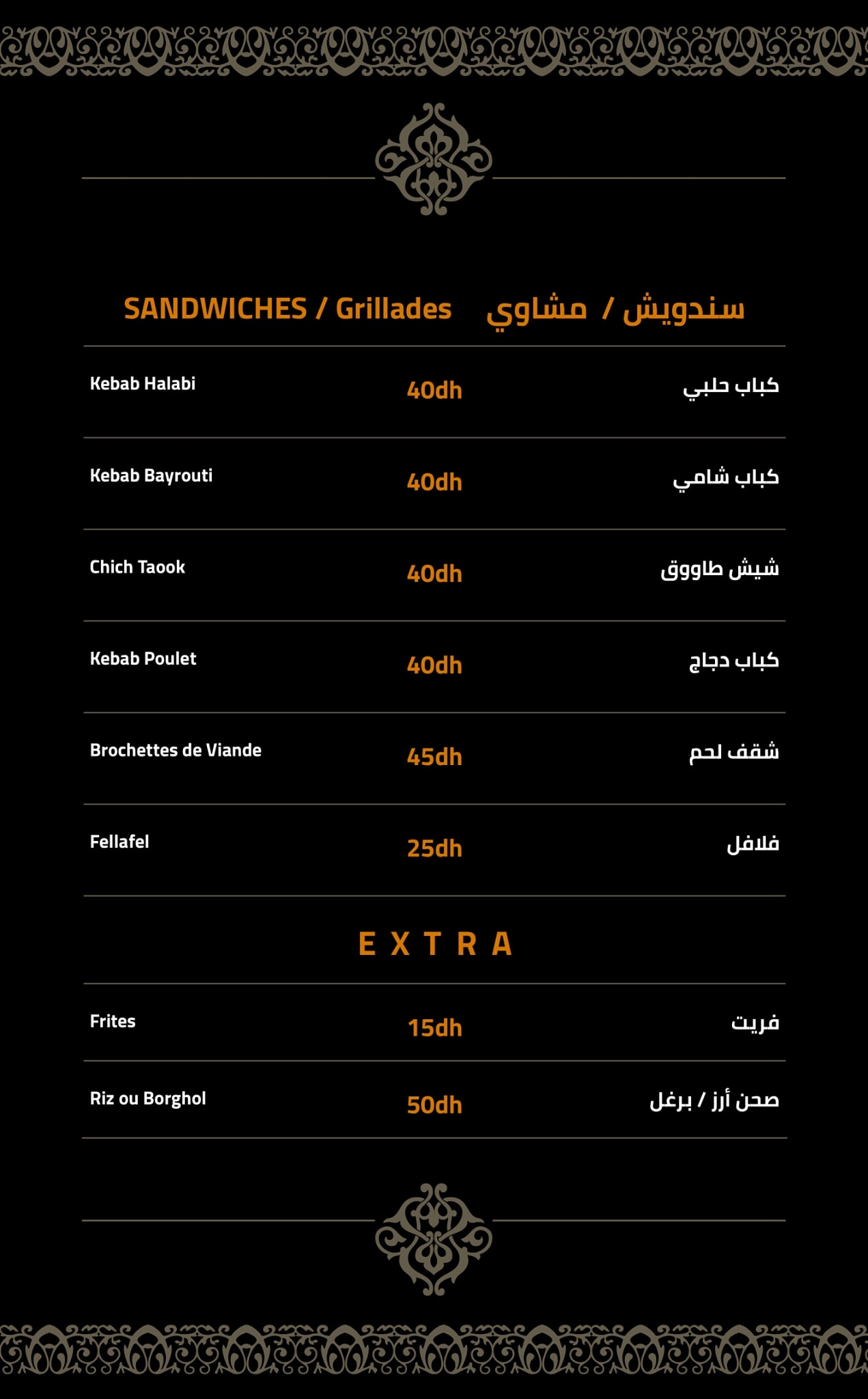 Menu Awtar Restaurant Oriental