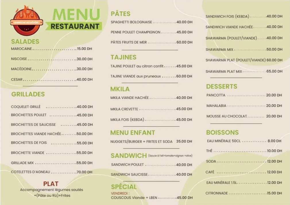 Menu Barbecue belvédère