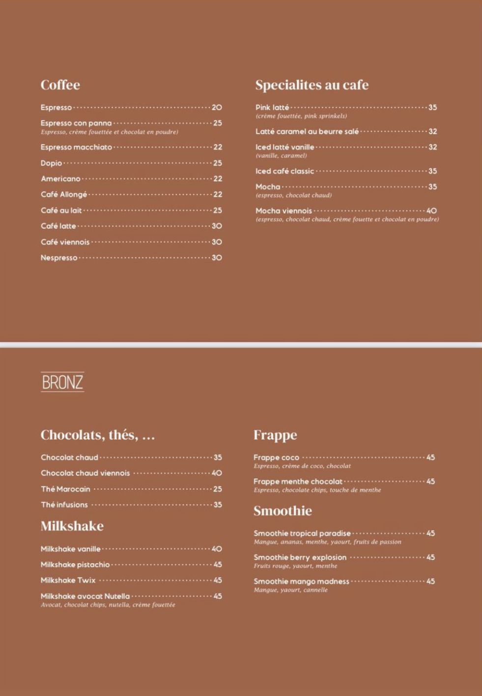 Menu Bronz