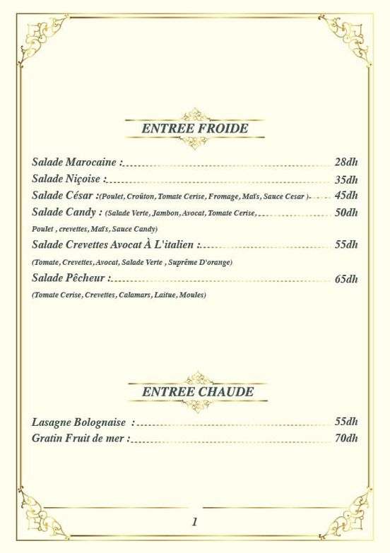 Menu Candy meal