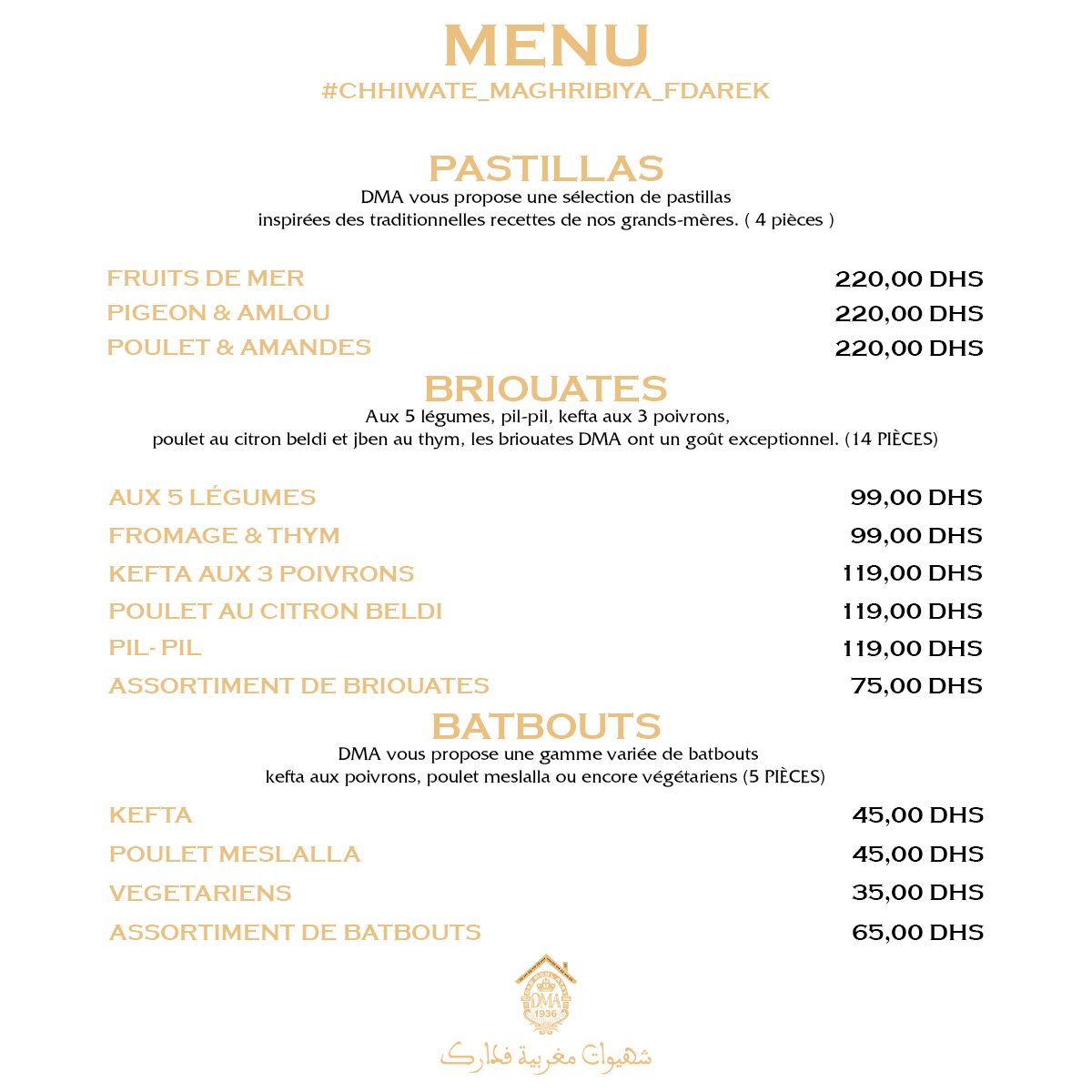 Menu DAR MOUL ATAY