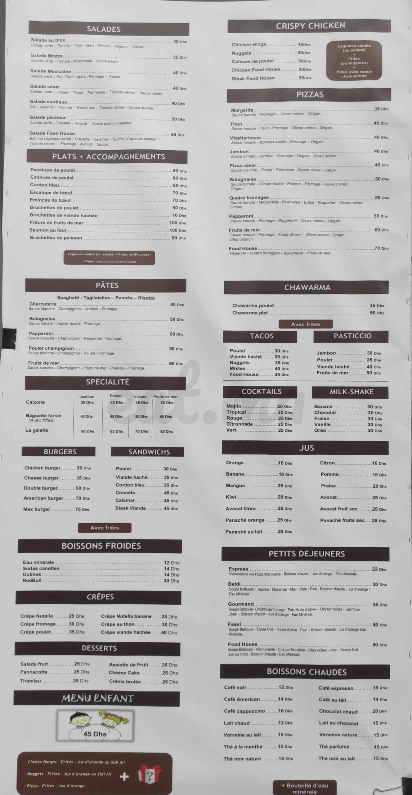 Menu Food house