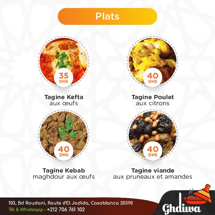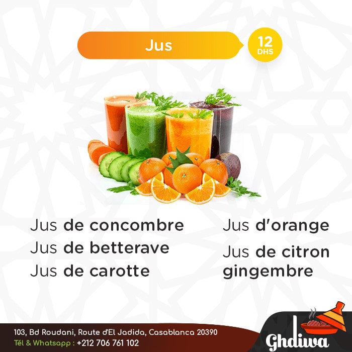 Marocain, Salades, Plats cuisinés, Jus de fruits