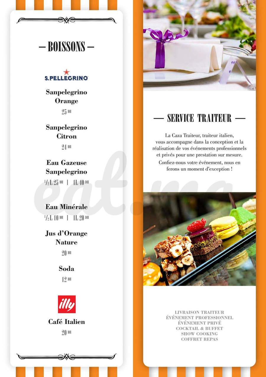 Livraison, Sur place, A emporter, Traiteur