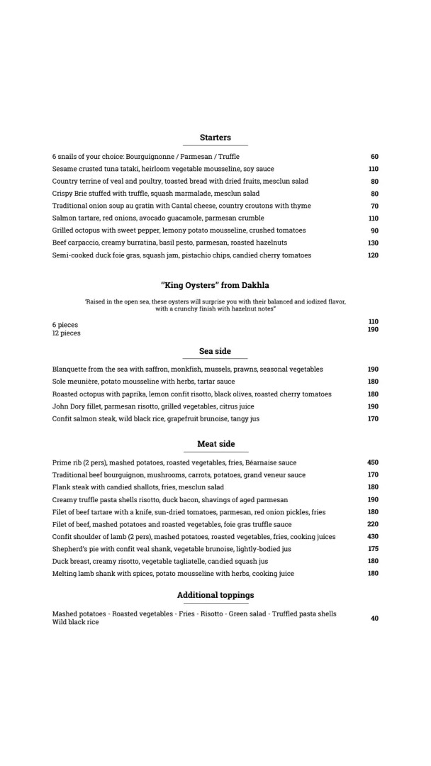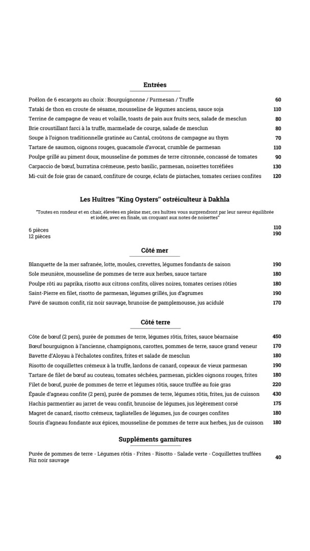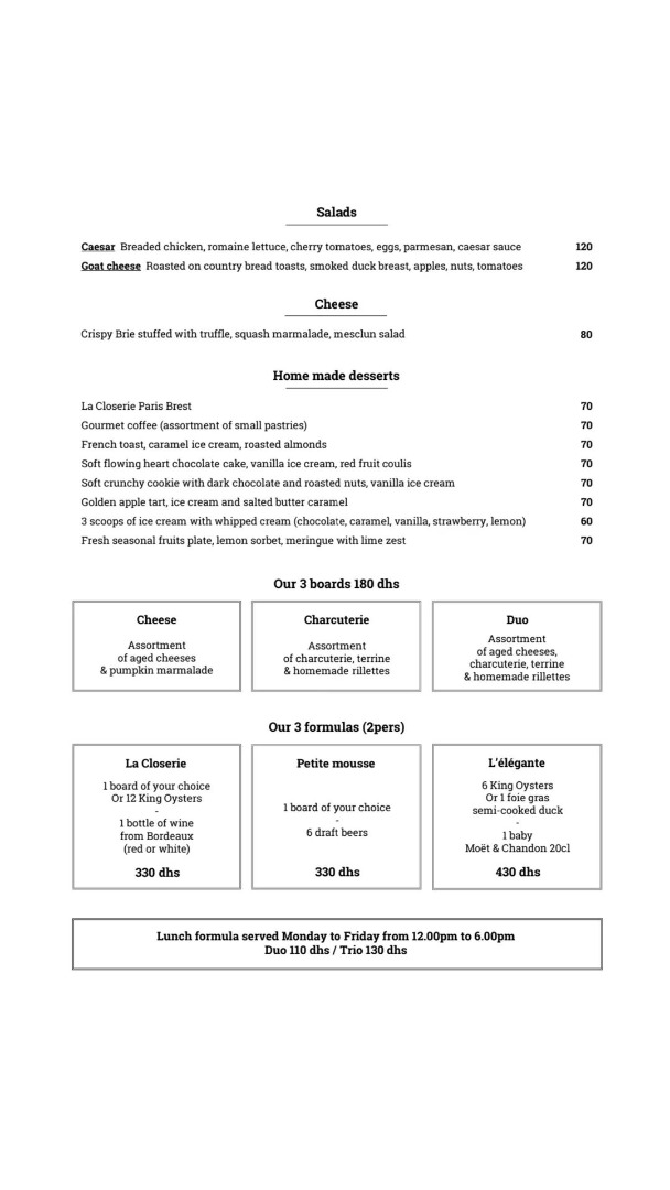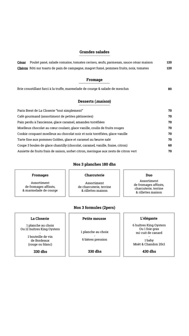 Menu La Closerie