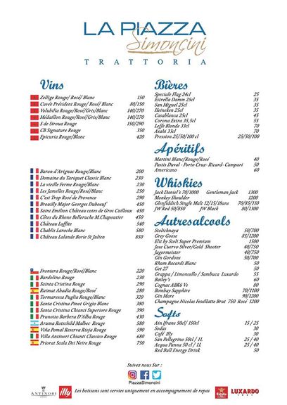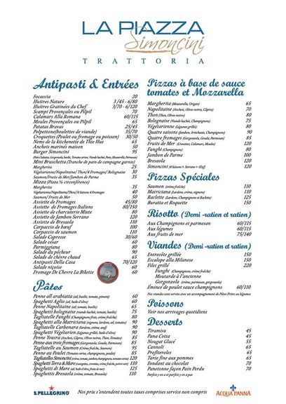 Menu La Piazza Simoncini