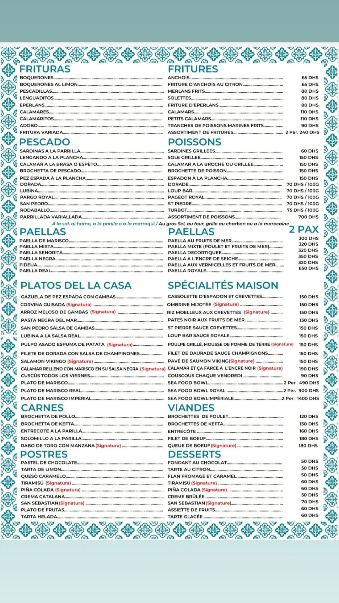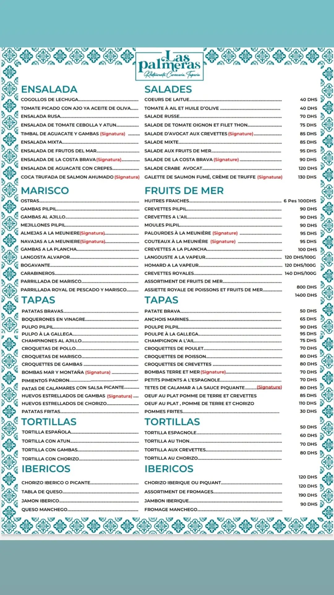 Menu Las Palmeras