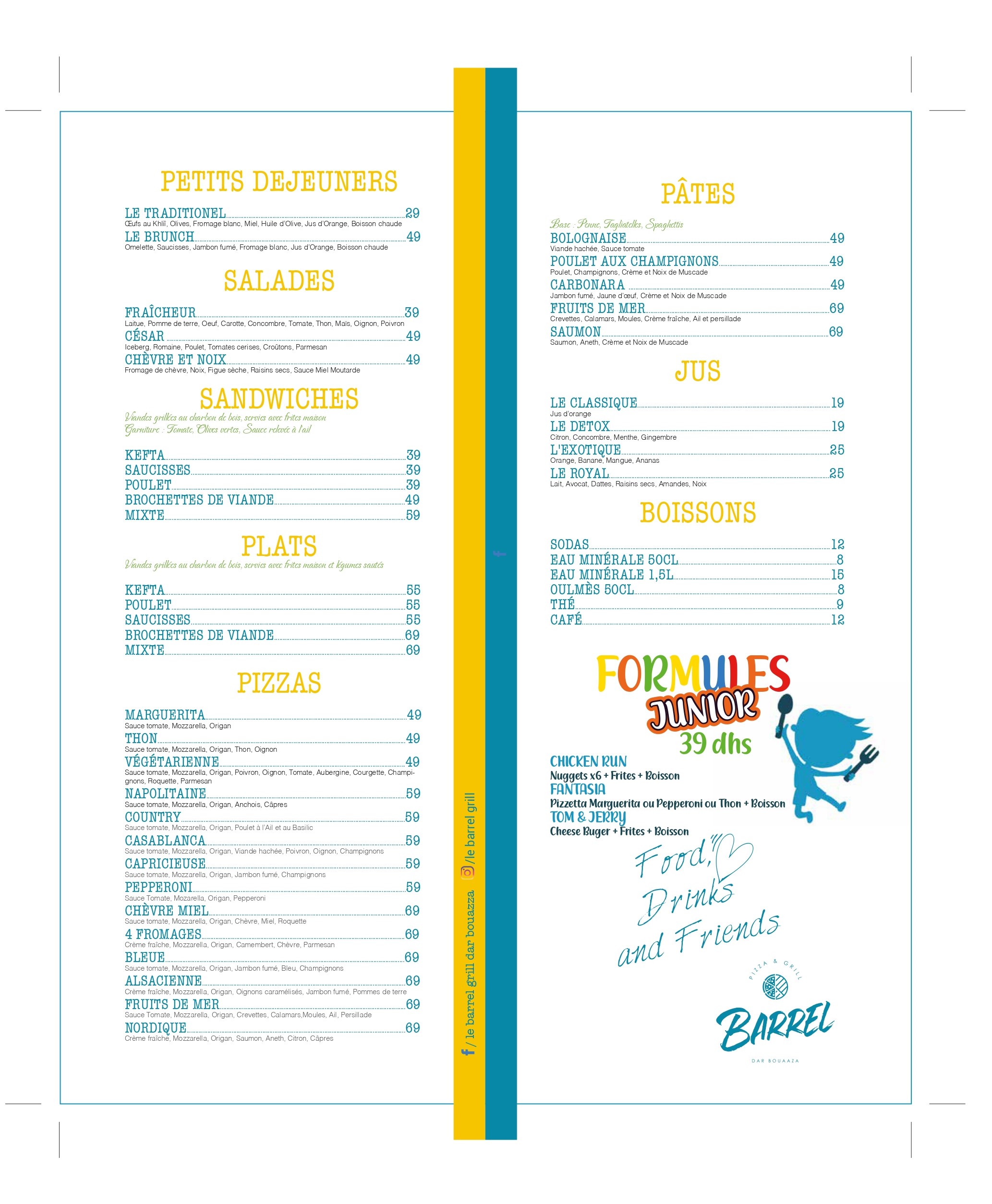 Menu Le Barrel Grill Dar Bouazza