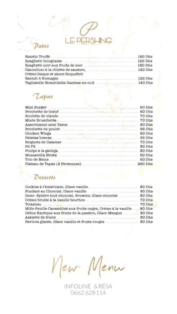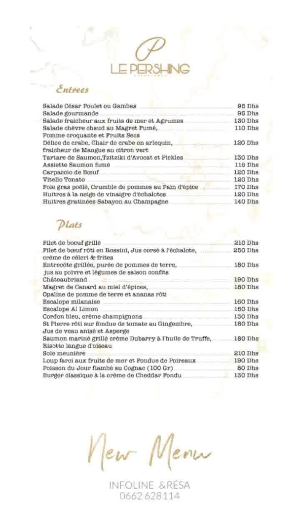 Menu Le Pershing