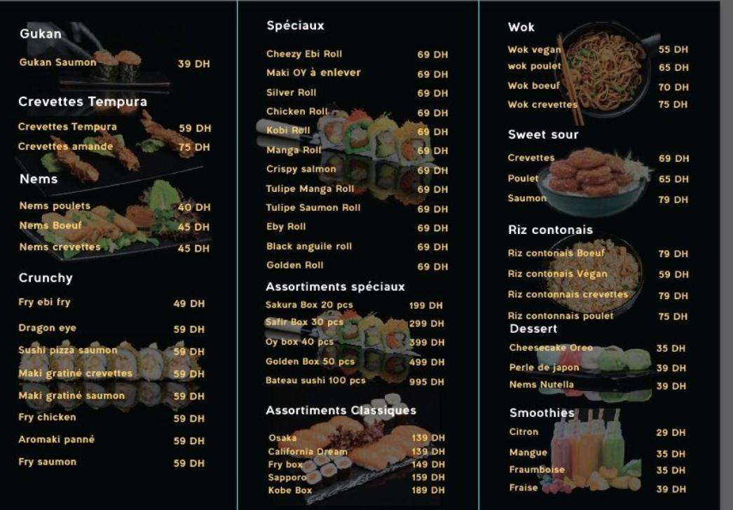 Menu Oy Sushi Californie