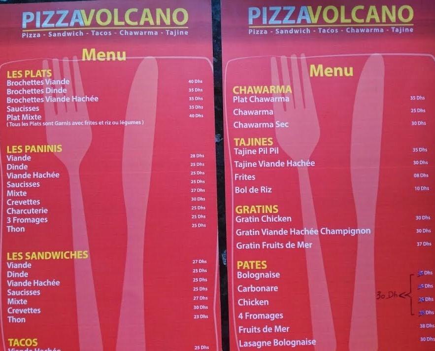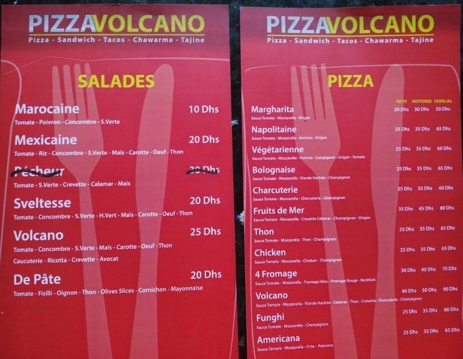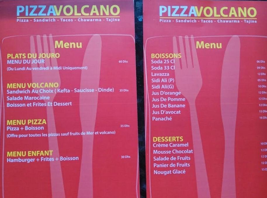 Menu Pizza Volcano