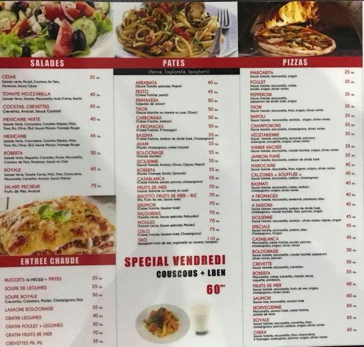 Menu Pizzeria Roberta