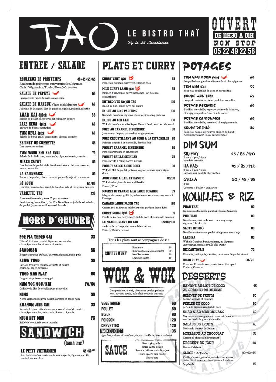 Salades, Sandwichs, Cuisine variée, Wok, Viande, Poulet