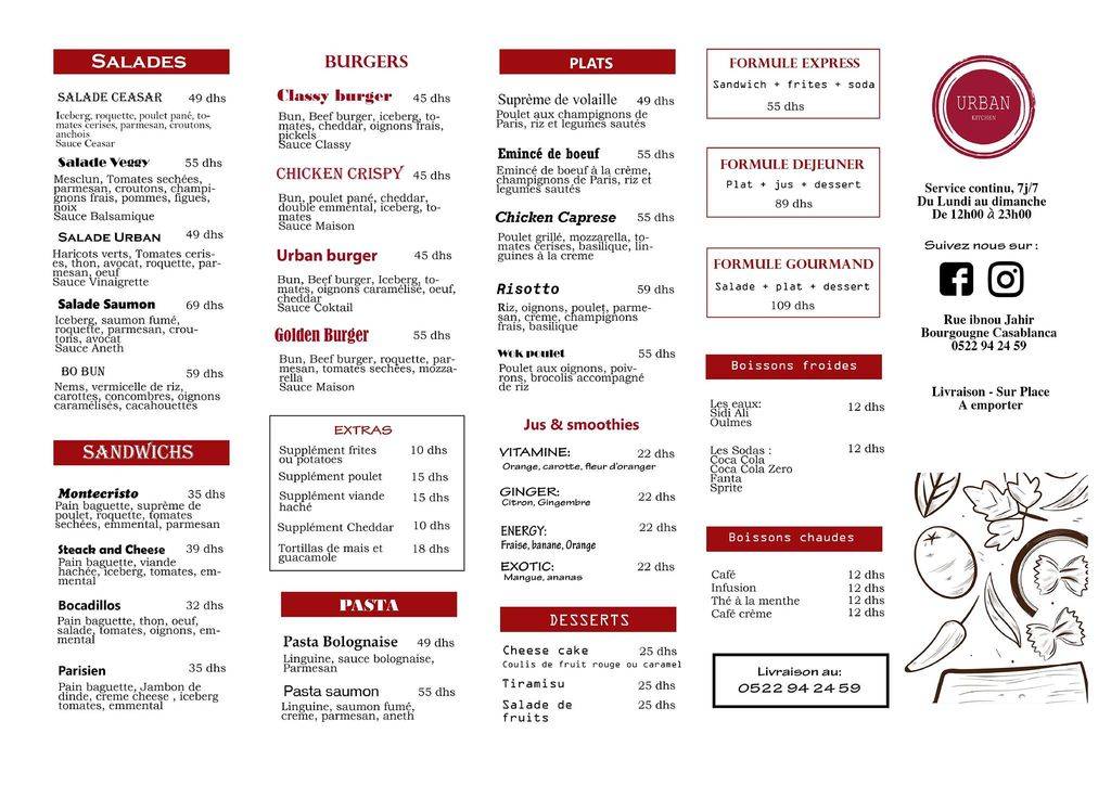 Menu Urban Kitchen Maroc