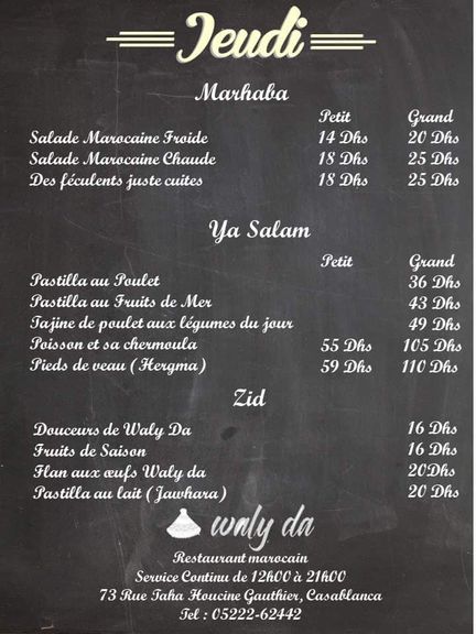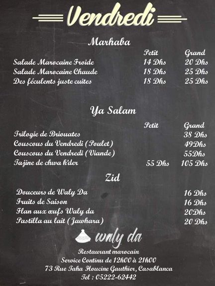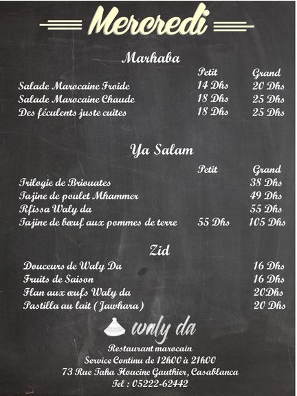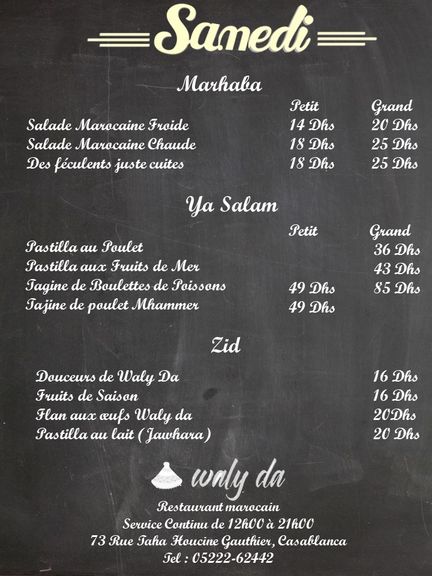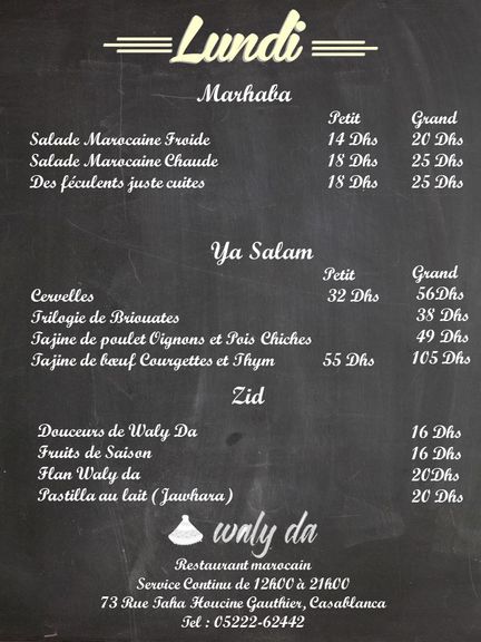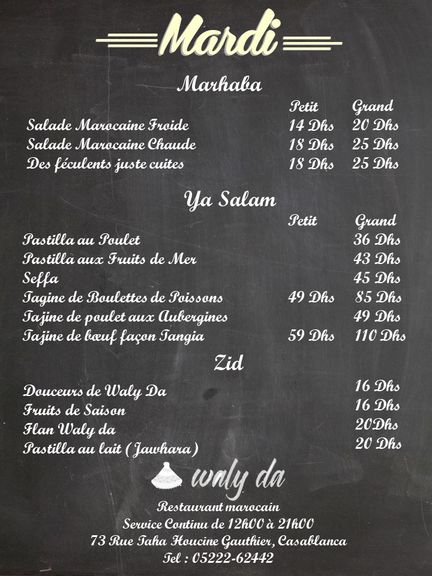 Marocain, Tanjia, Couscous, Tagine, Salades