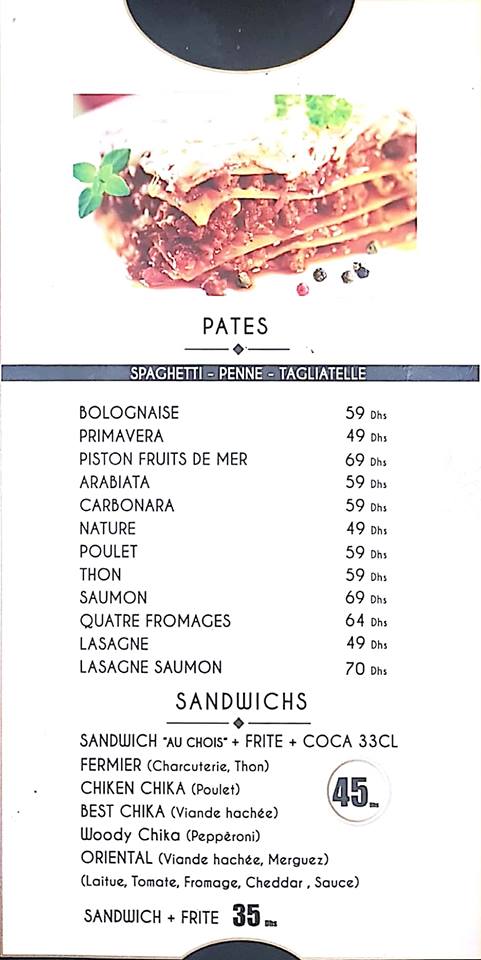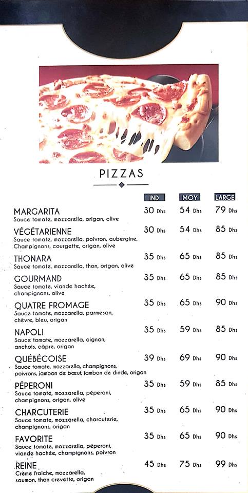 Menu Woody Chay Pizza