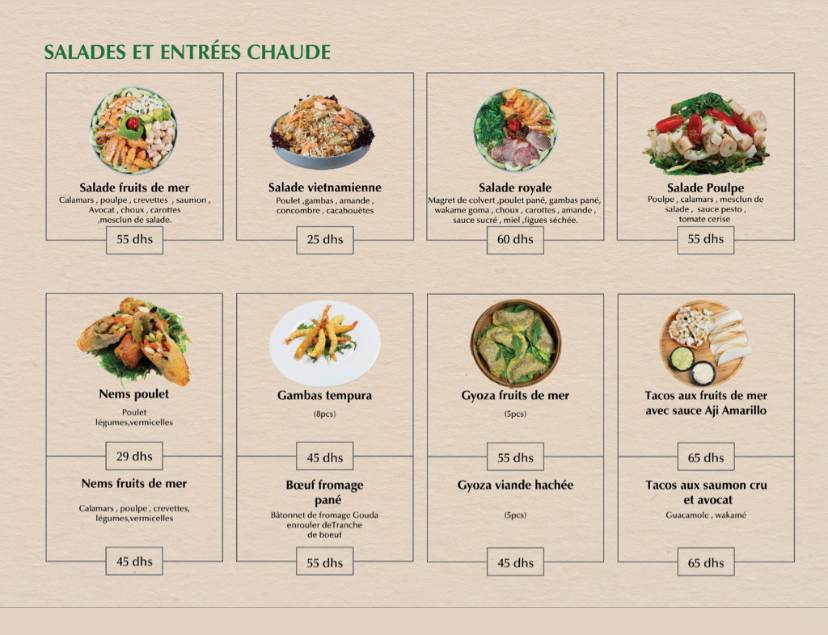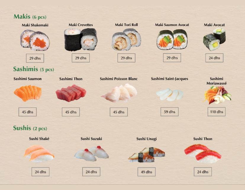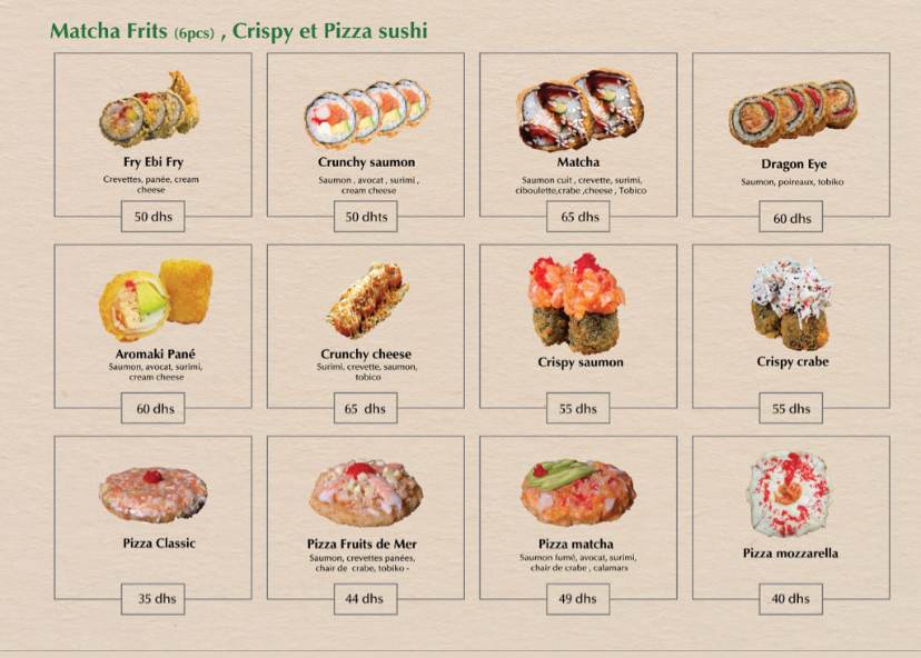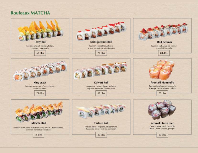 Menu Matcha sushi