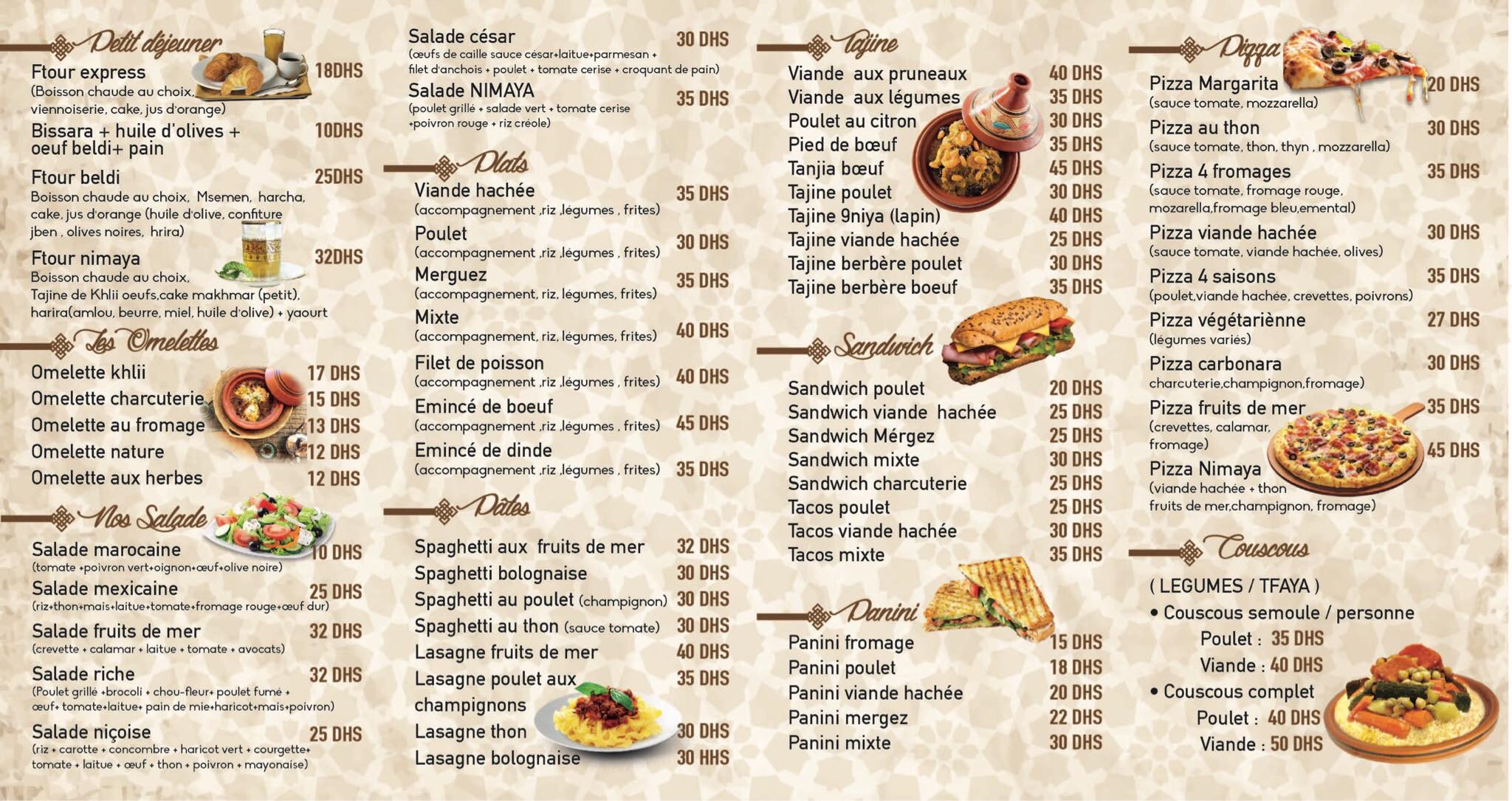 Pizza, Tagine, Fast-food, Petit-déjeuner