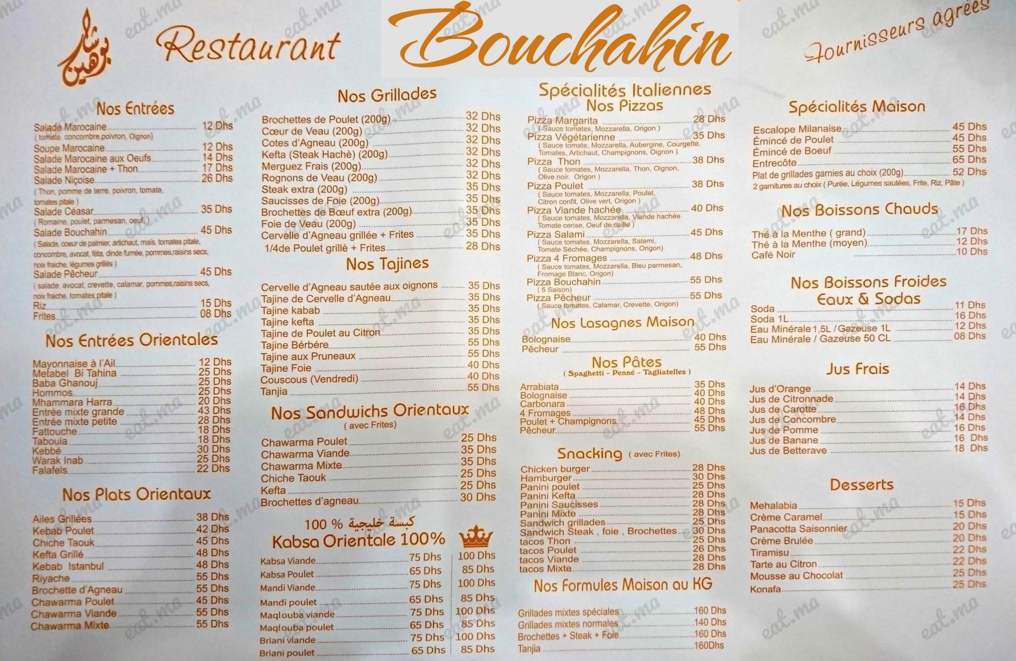 Menu Bouchahin