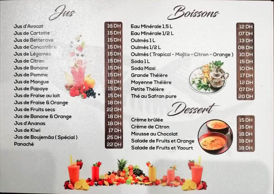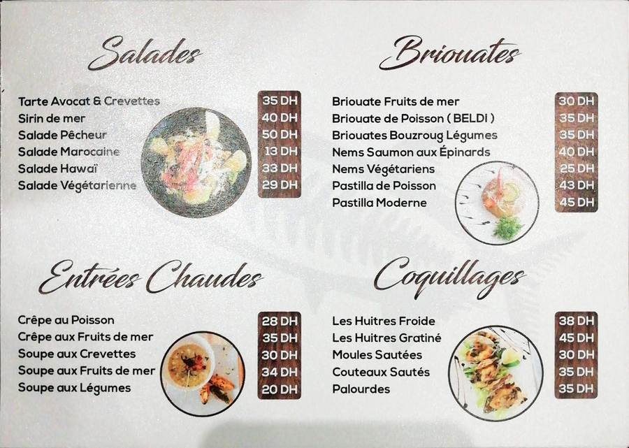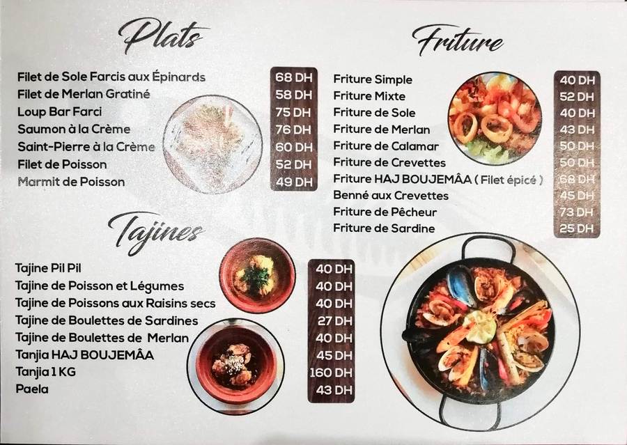 Menu Boujemaa Poisson