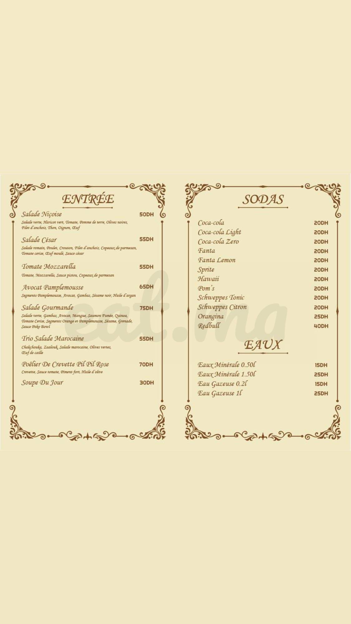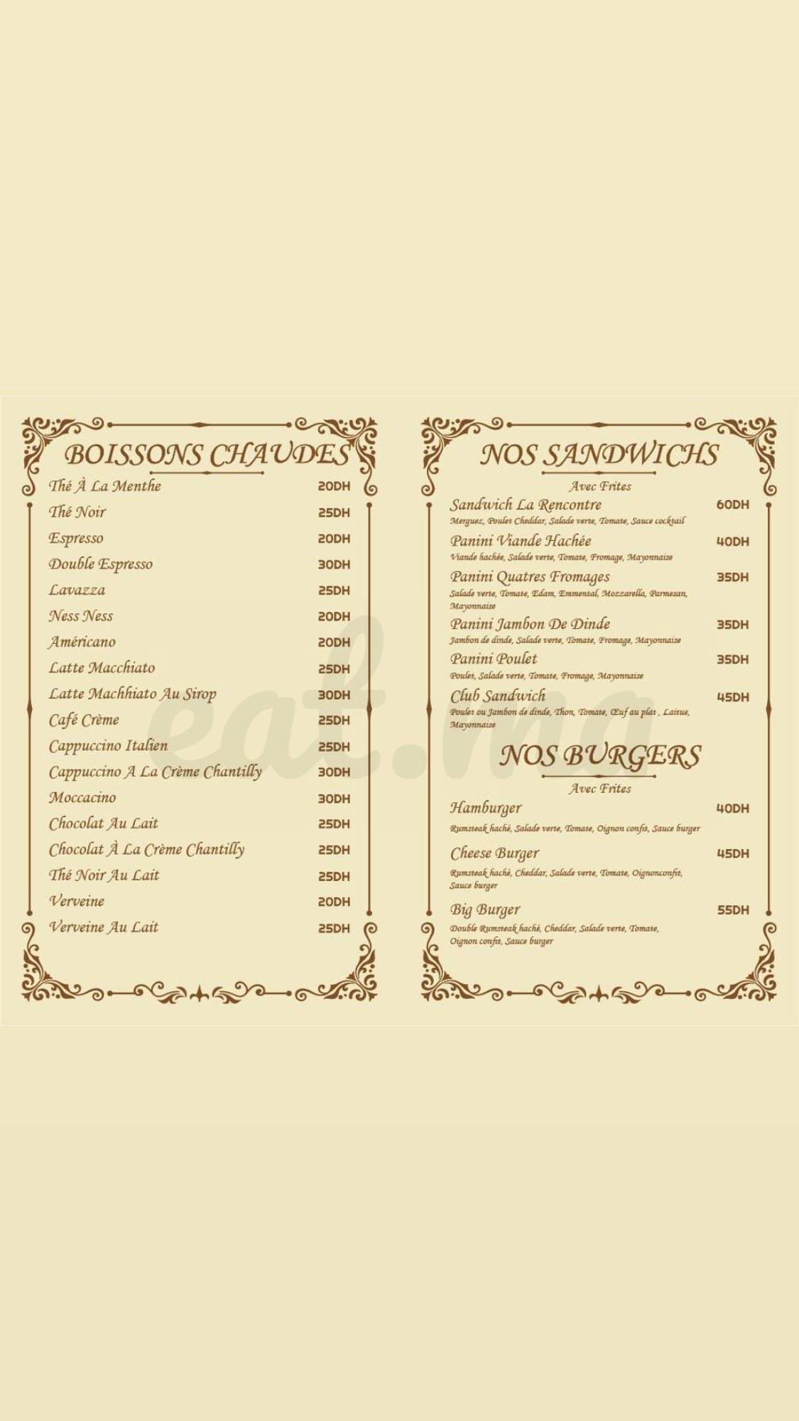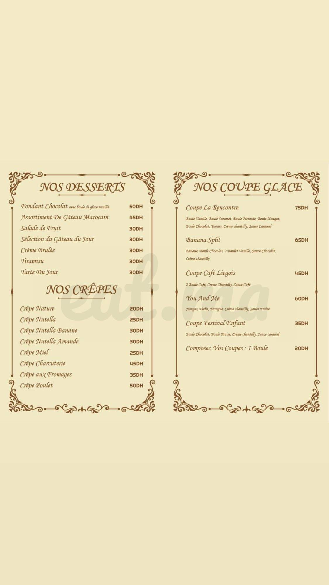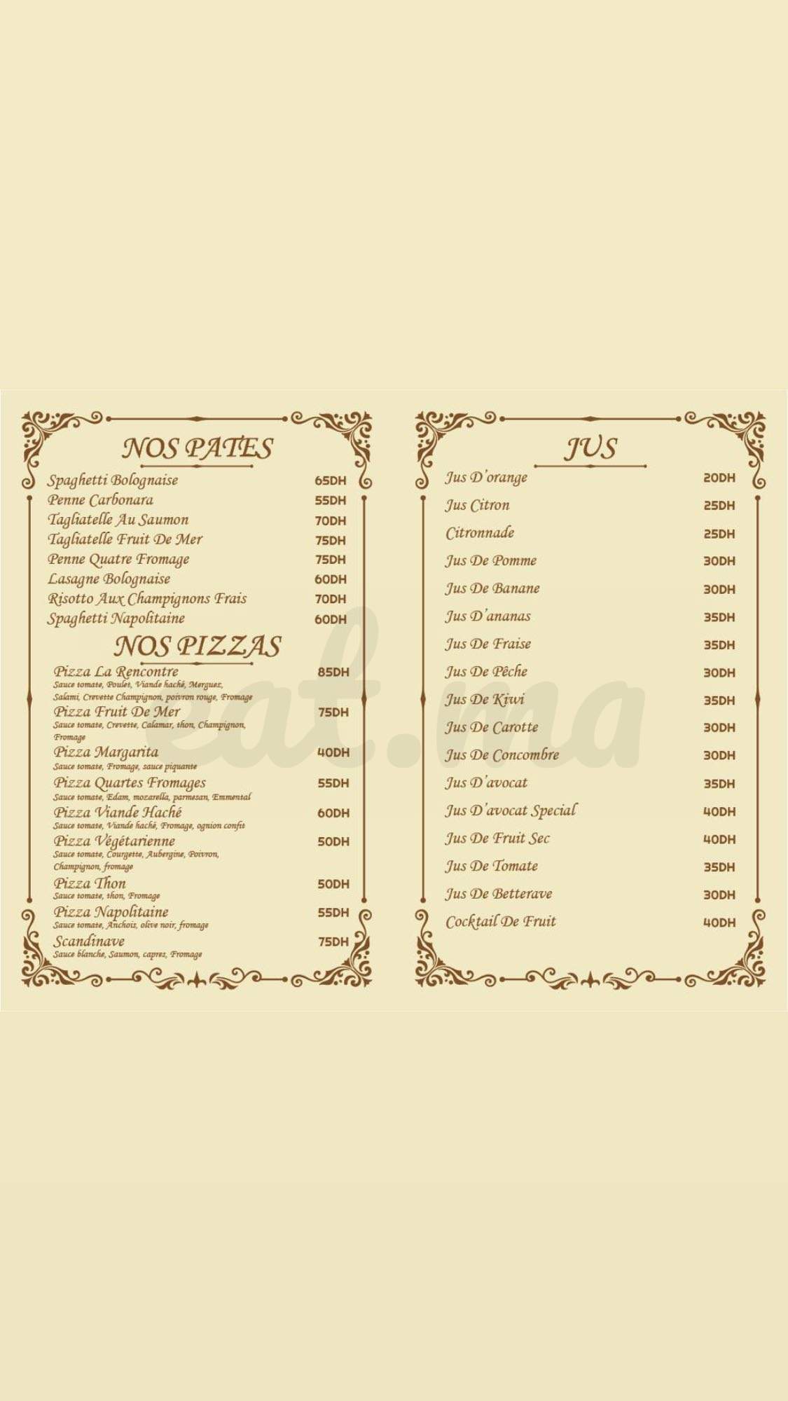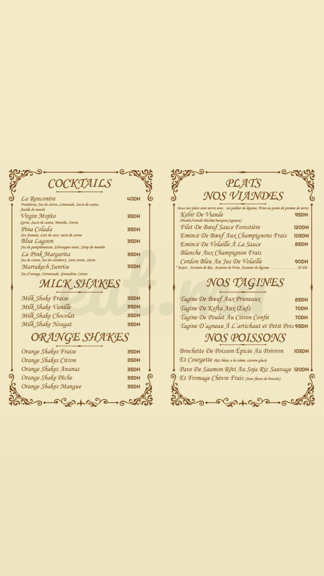 Menu La Rencontre Marrakech