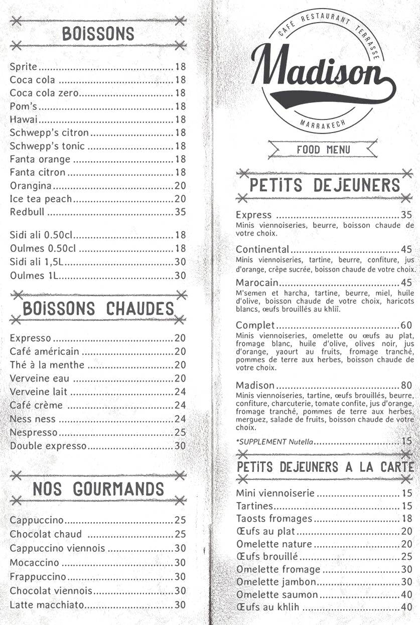 Menu Le Madison