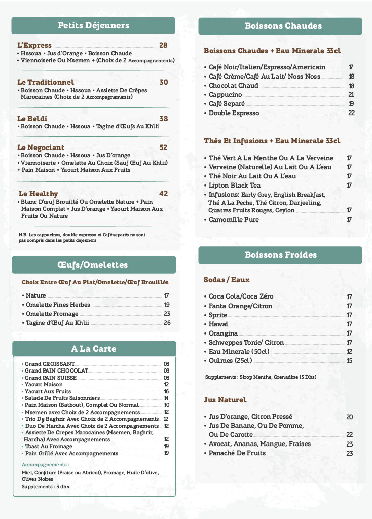 Menu Café Les Négociants