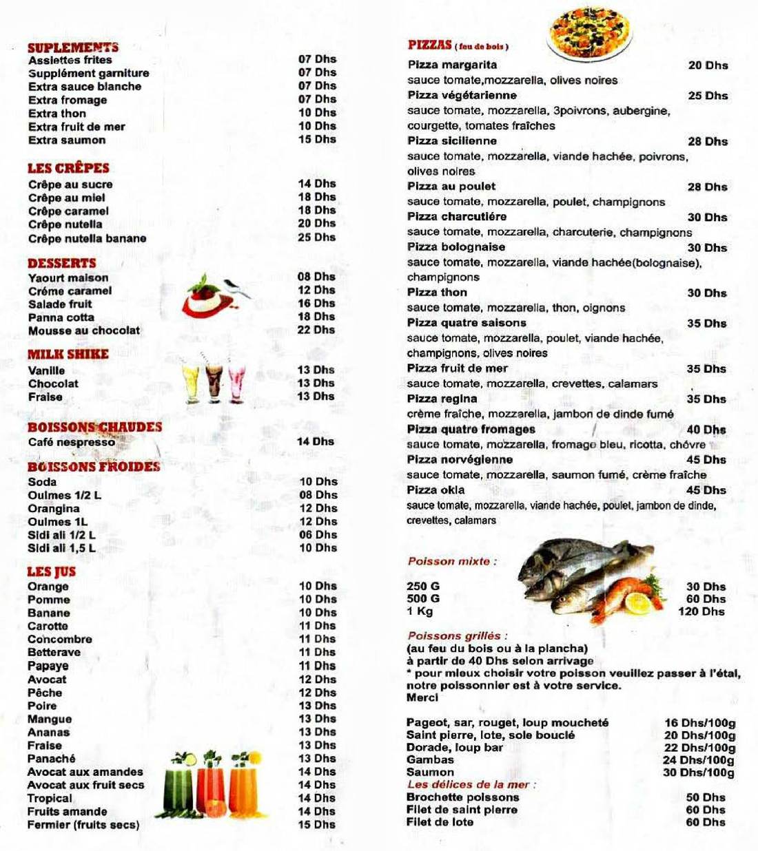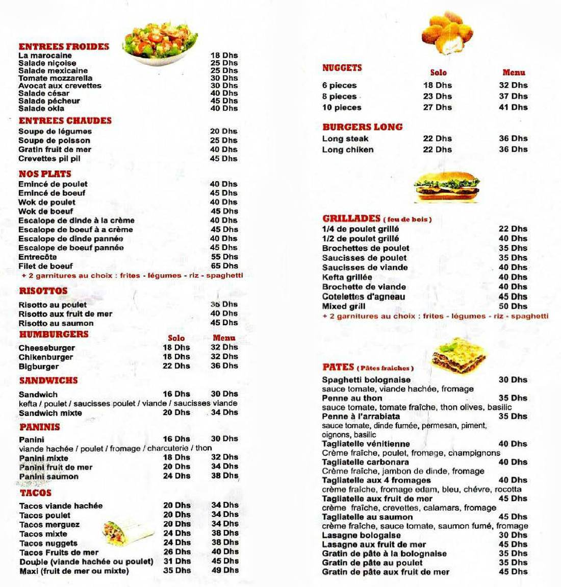 Pizza, Tacos, Poisson, Grillades, Pâtes