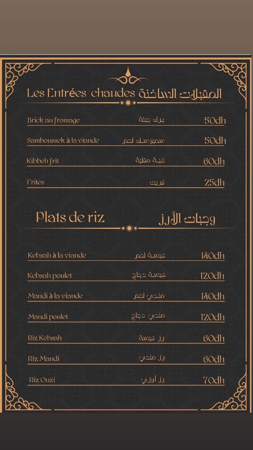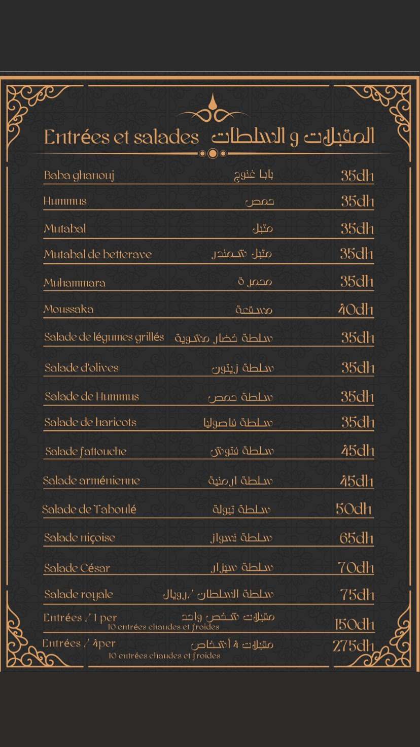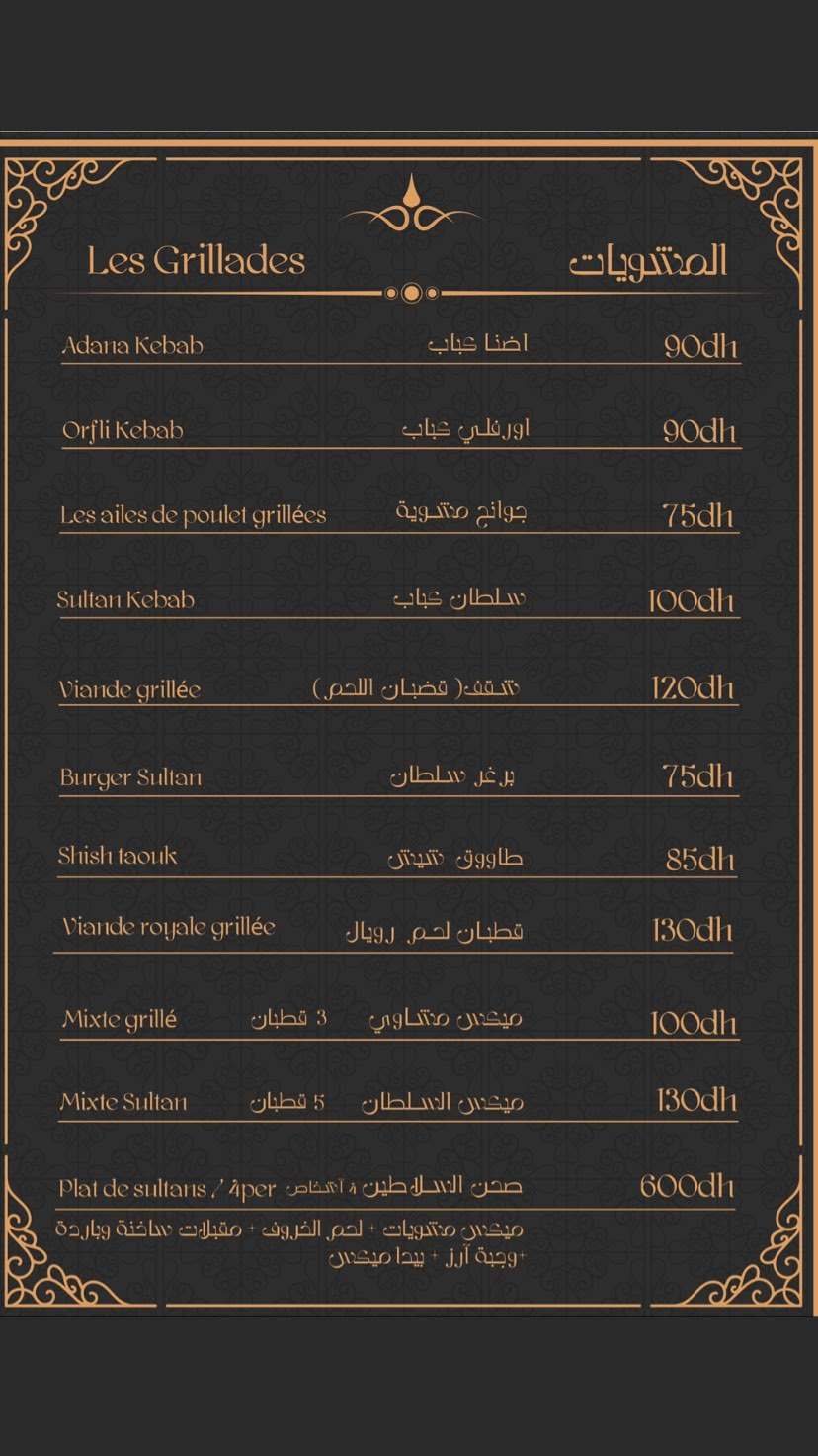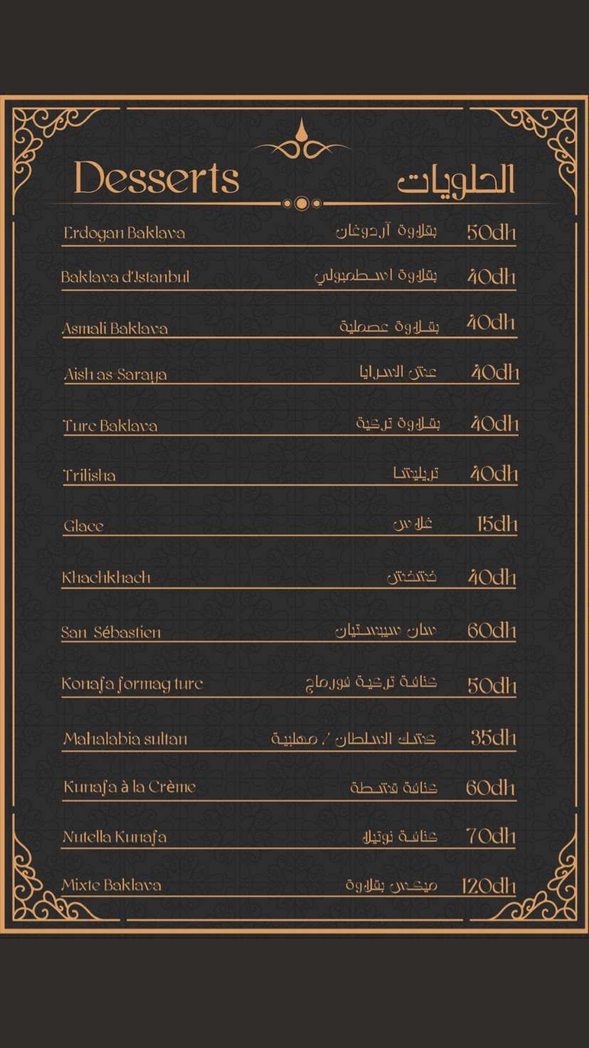 Menu Sultan Saray restaurant