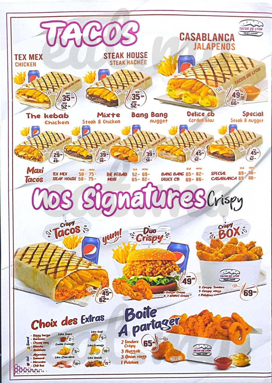 Menu Tacos De Lyon Carrée Éden