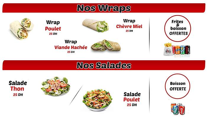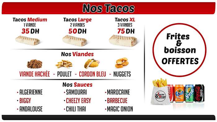 Tacos, Salades, Glaces, Wraps