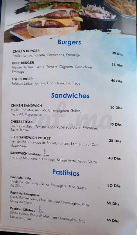 Menu L’bateau
