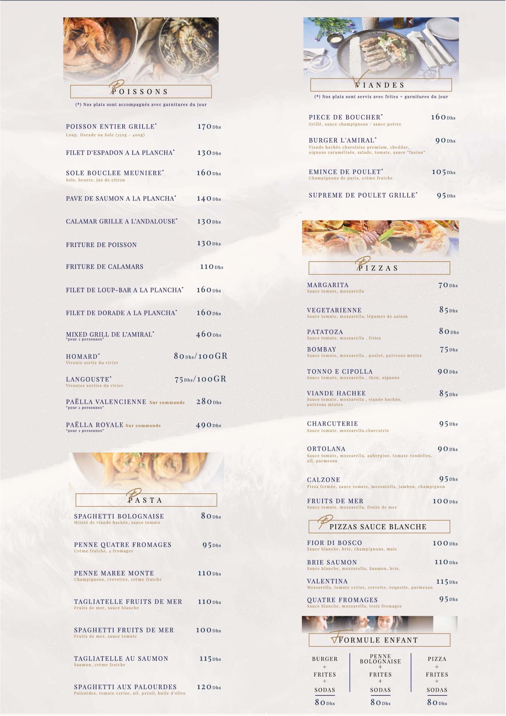 Menu La table de l’Amiral