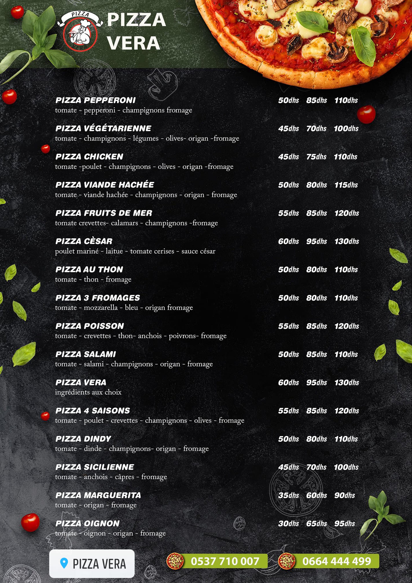 Menu Pizza Vera