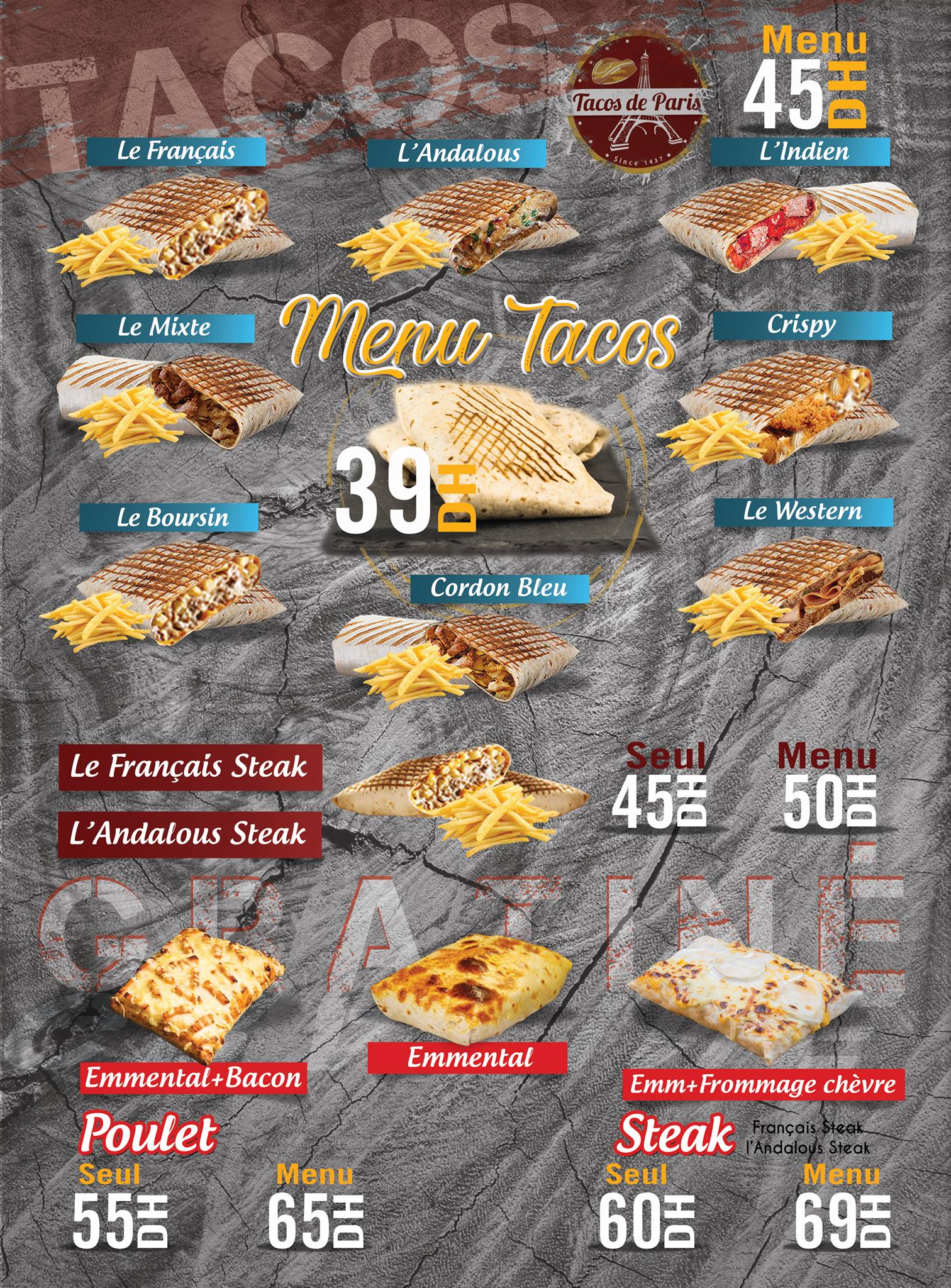 Menu Tacos de Paris