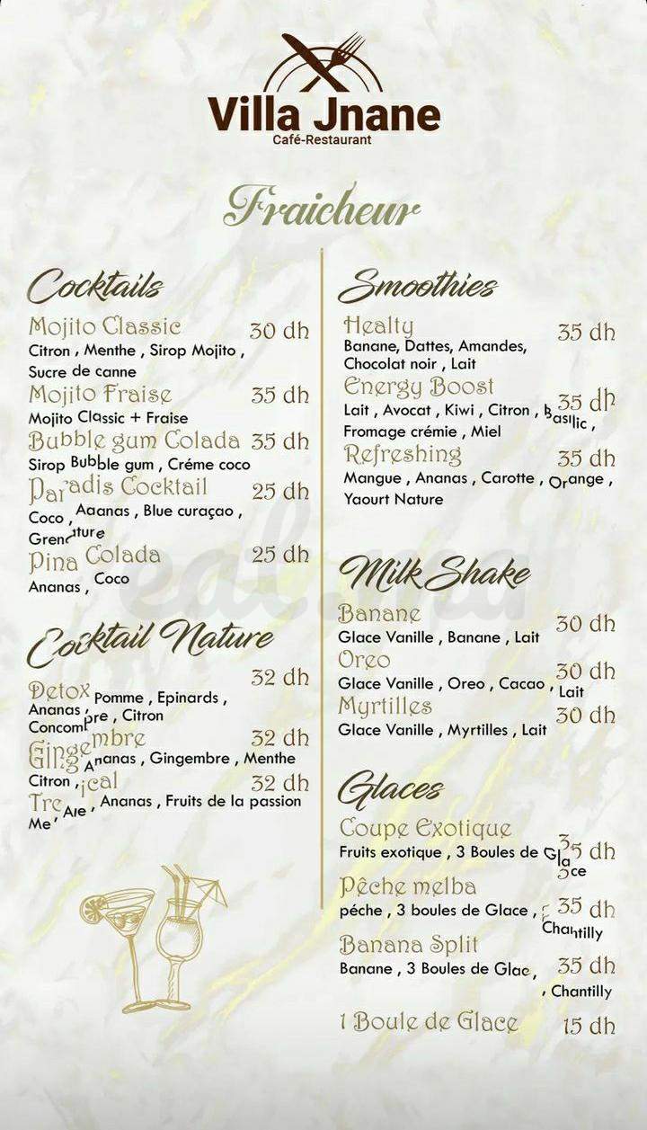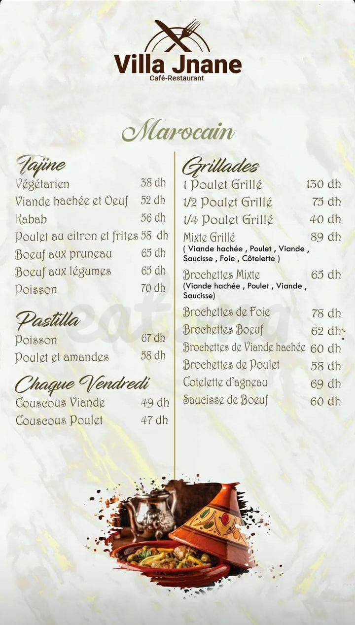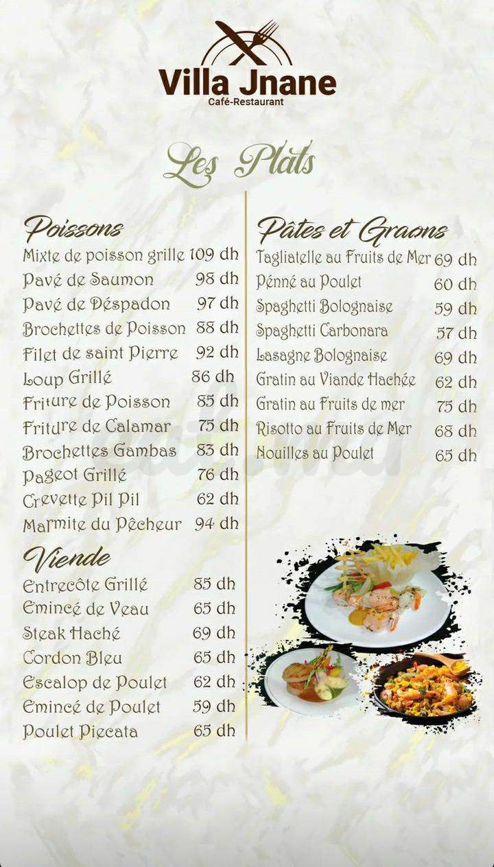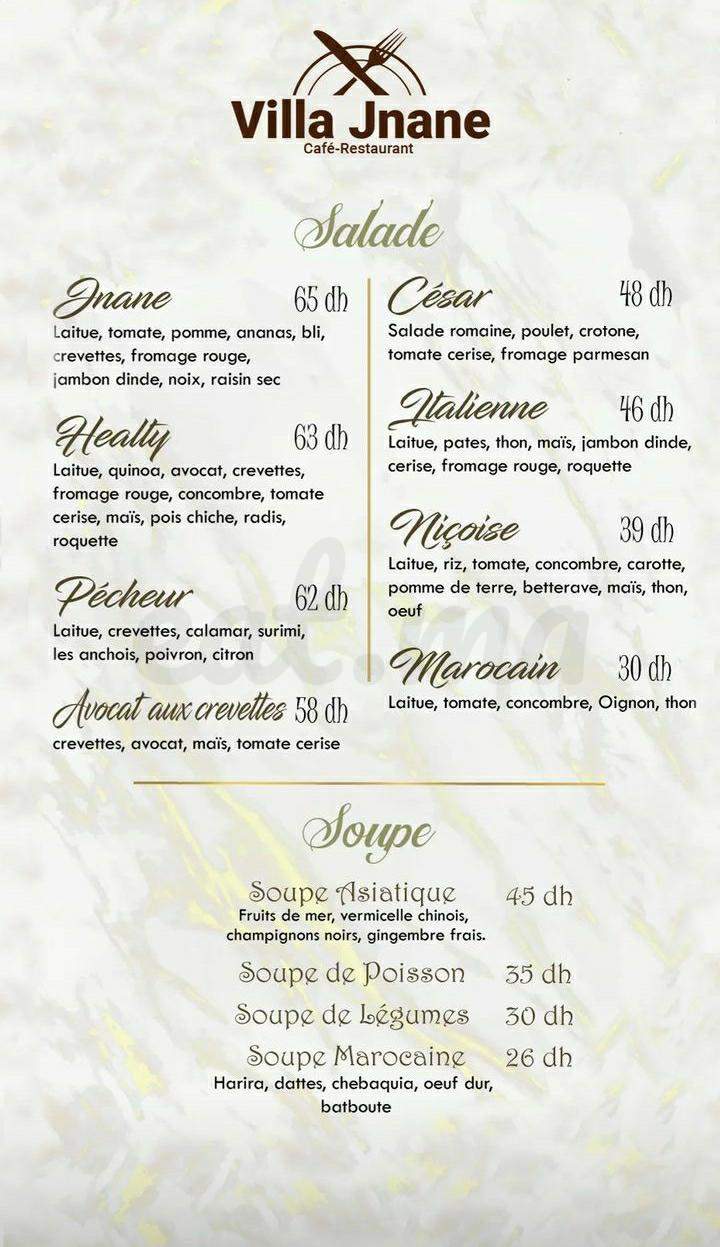 Menu VILLA JNANE