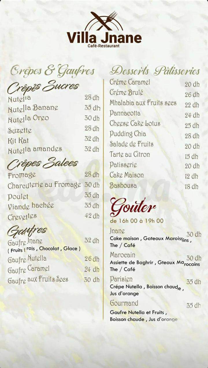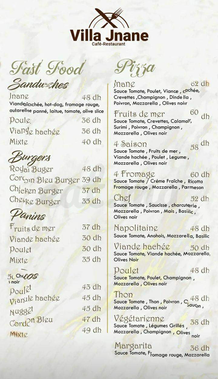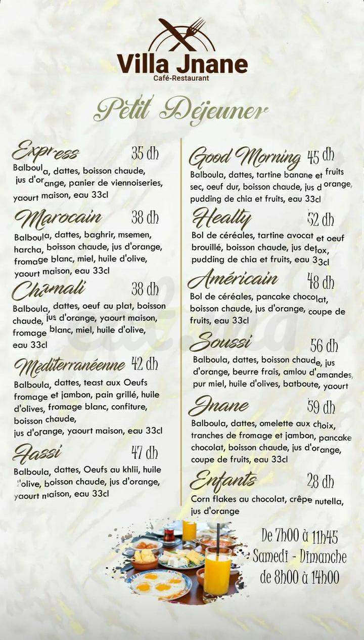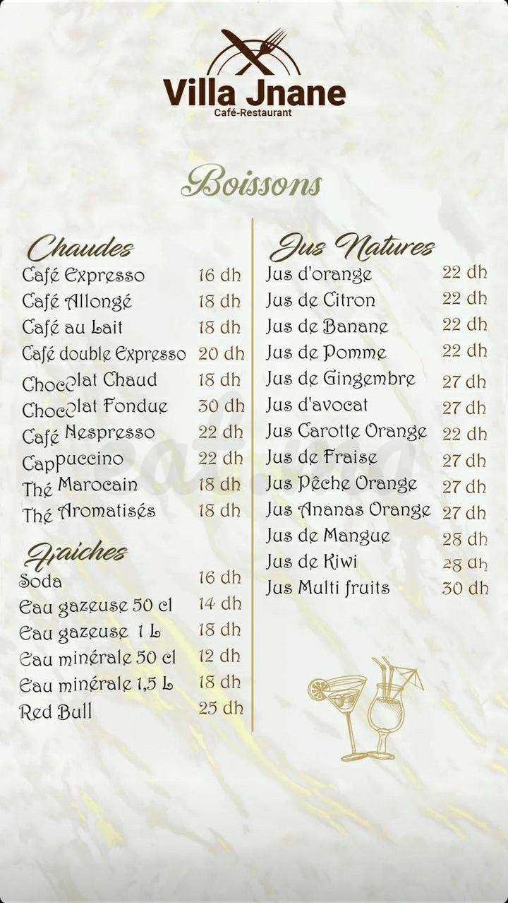 Menu VILLA JNANE