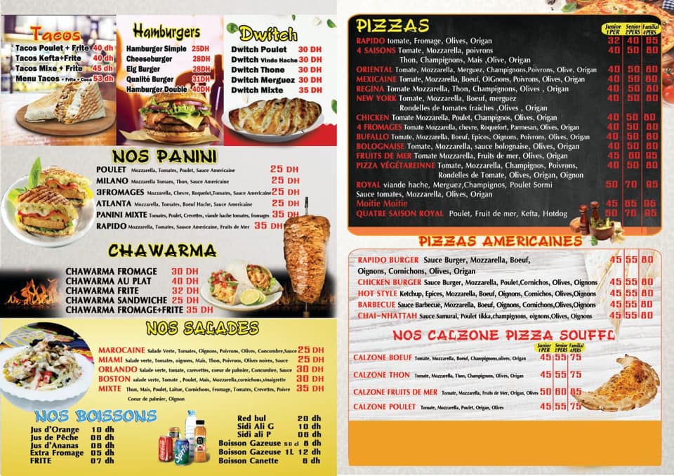 Pizza, Shawarma, Panini, Salades